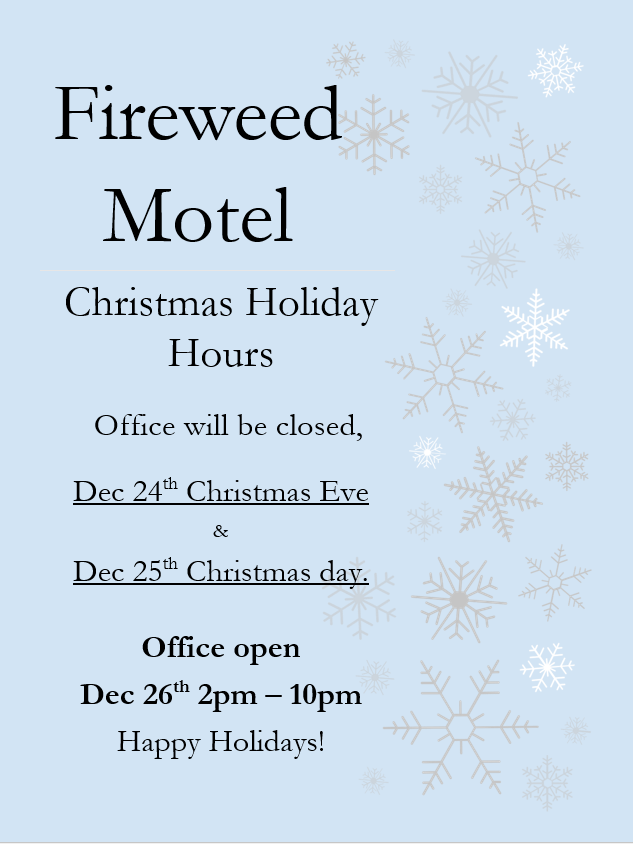 Enjoy great service, easy access, and a warm welcome at the Fireweed Motel, the perfect place to rest, recharge, and continue your journey.